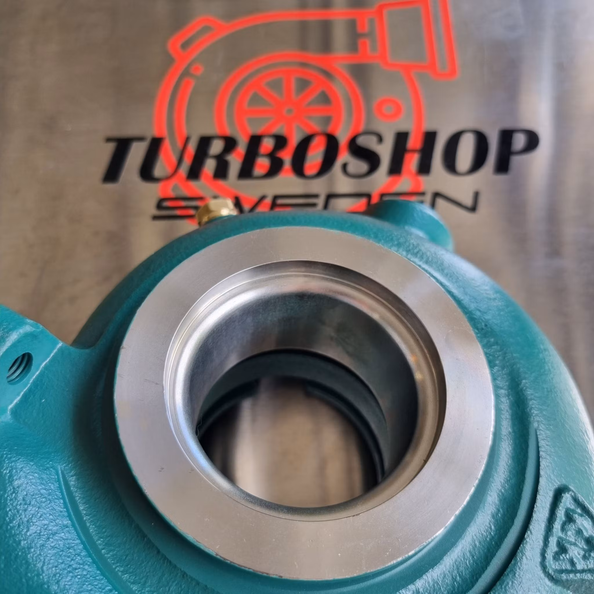 Original renoverad bytesturbo med rostfri hylsa i turbinhuset - Syrafast rostfritt : 2348 / 1.4404 - Hylsan täcker hela radien.